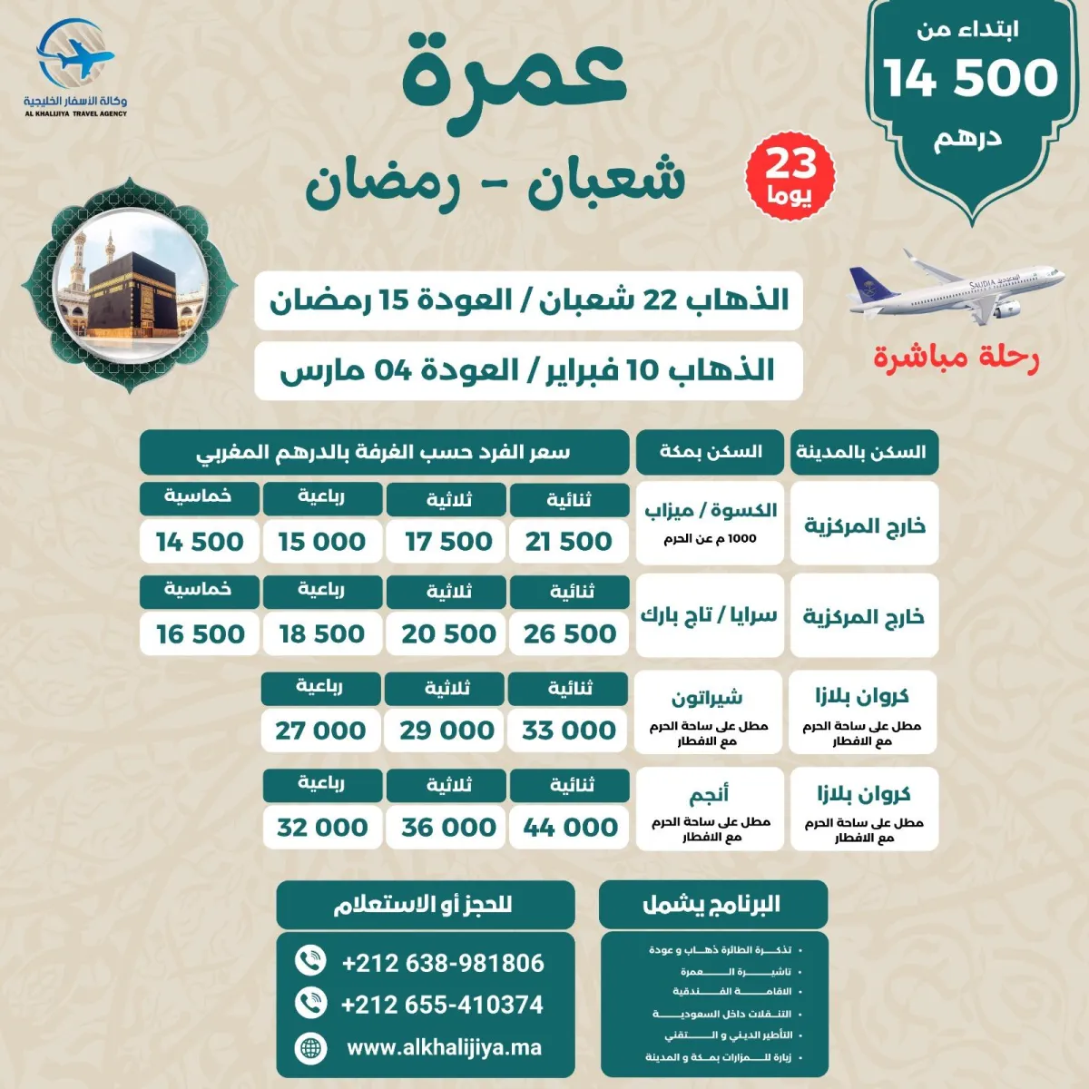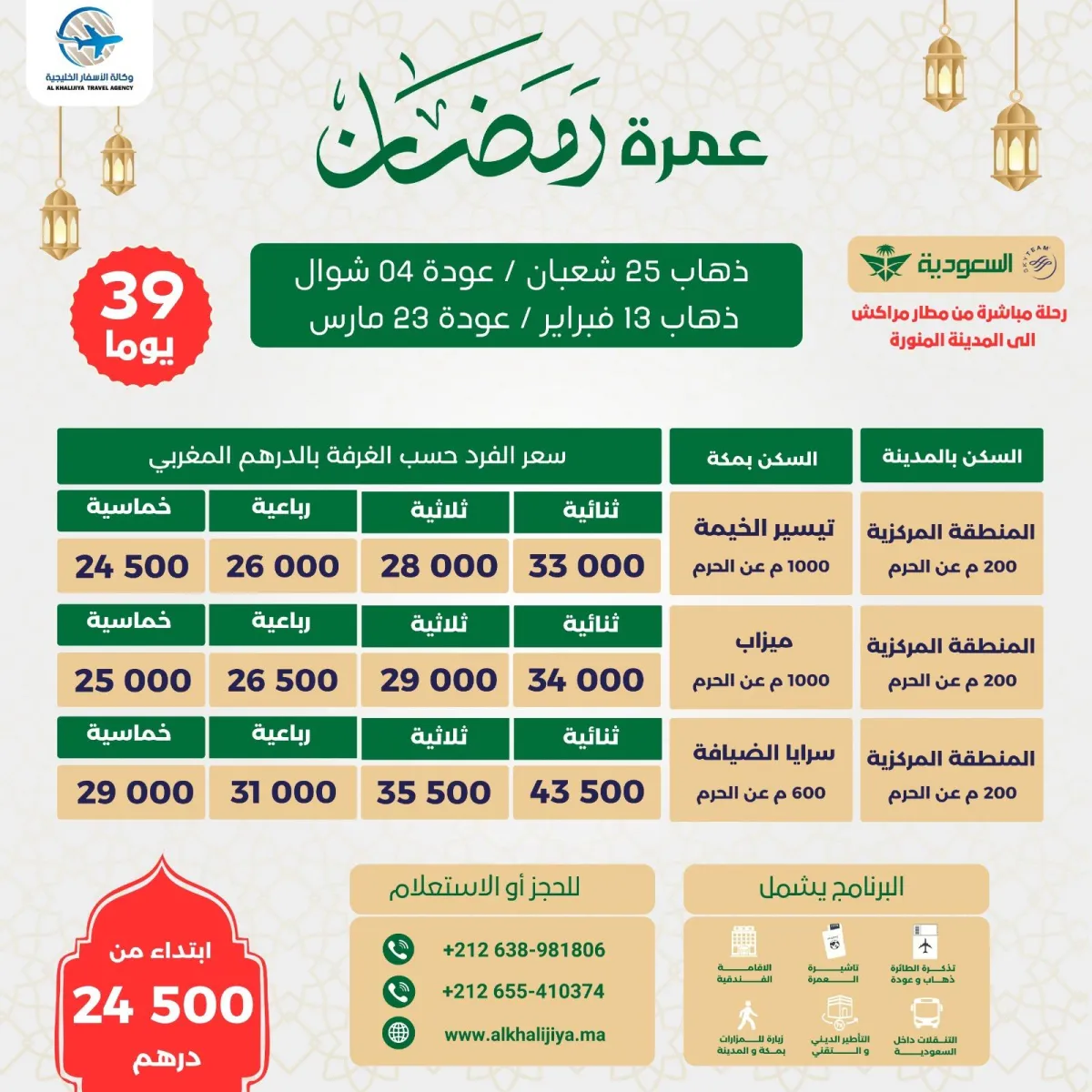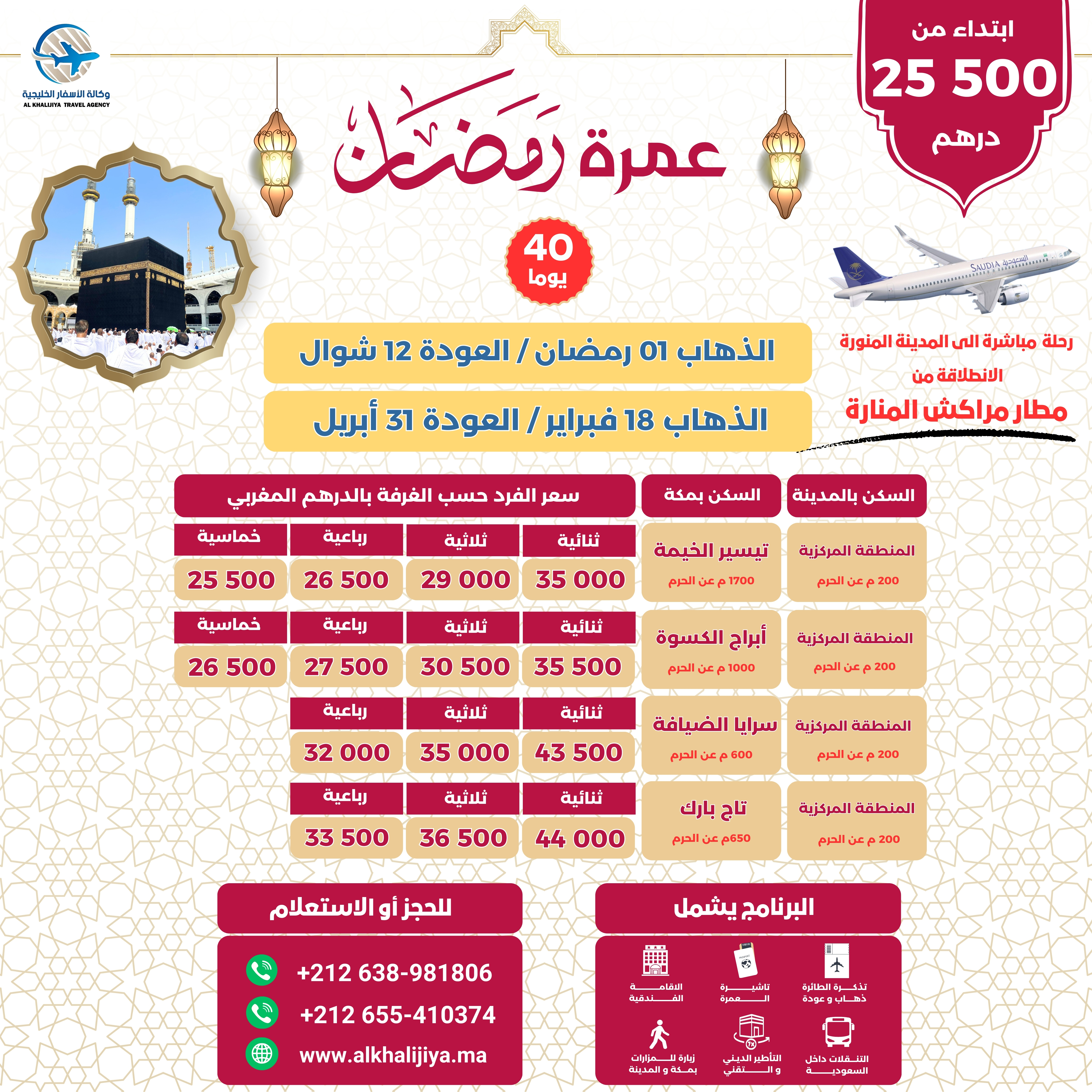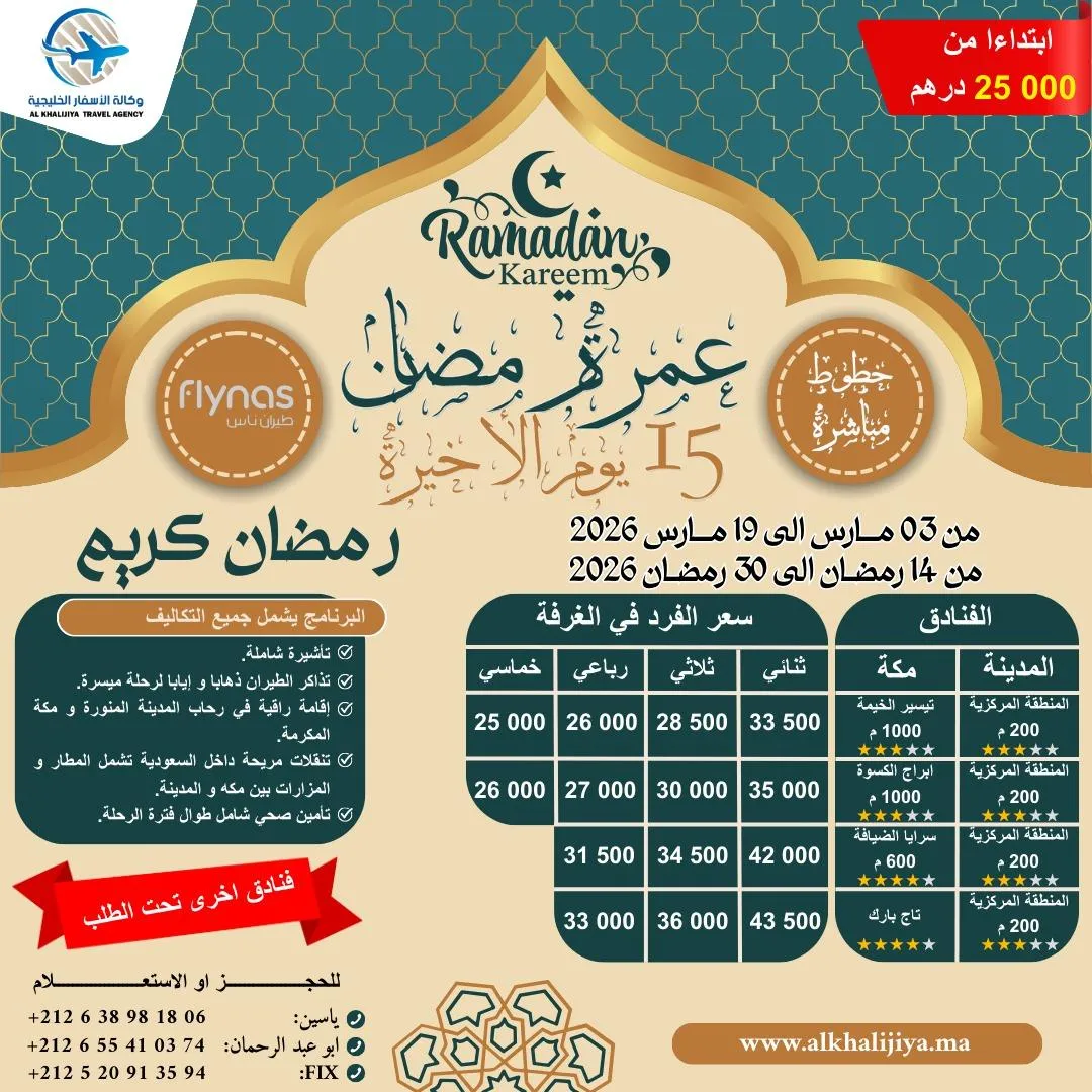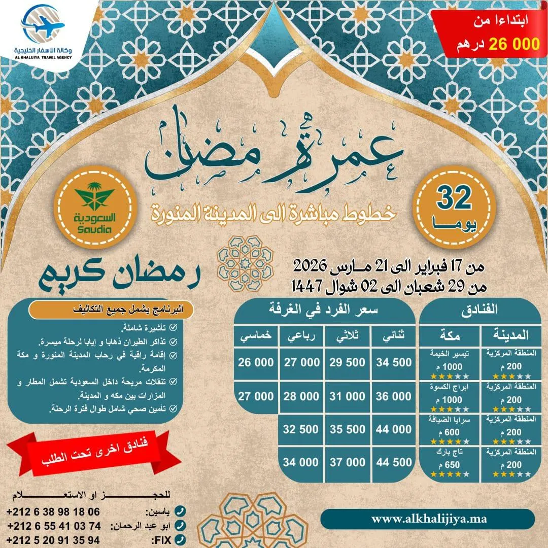 رحلة مباشرة من مراكش الى المدينة المنورة-- -